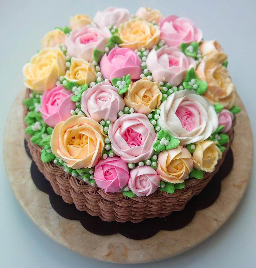 Korean buttercream cake, homemade flower cake, premium lapis Surabaya, birthday cake Jakarta, blue rose