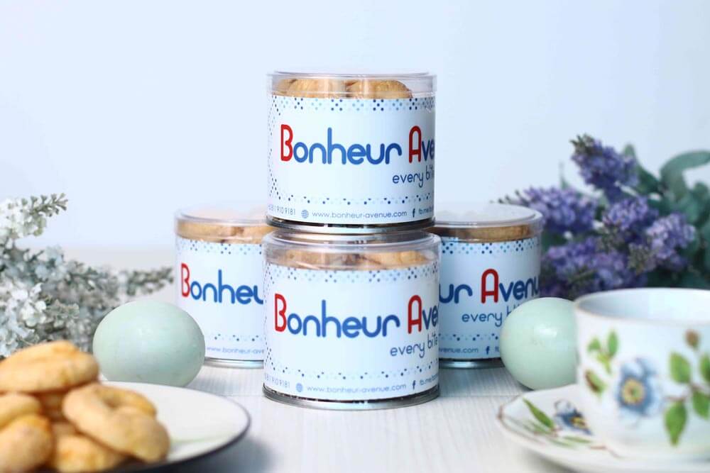 [/vc_column_text][/vc_column_inner][/vc_row_inner][vc_separator color=”custom” accent_color=”#f1f1f1″][vc_column_text css=”.vc_custom_1517308498392{margin-bottom: 25px !important;}”]Our latest addition to Bonheur Avenue’s new line of products, welcoming the golden rings, a.k.a. salted egg yolk cookies.